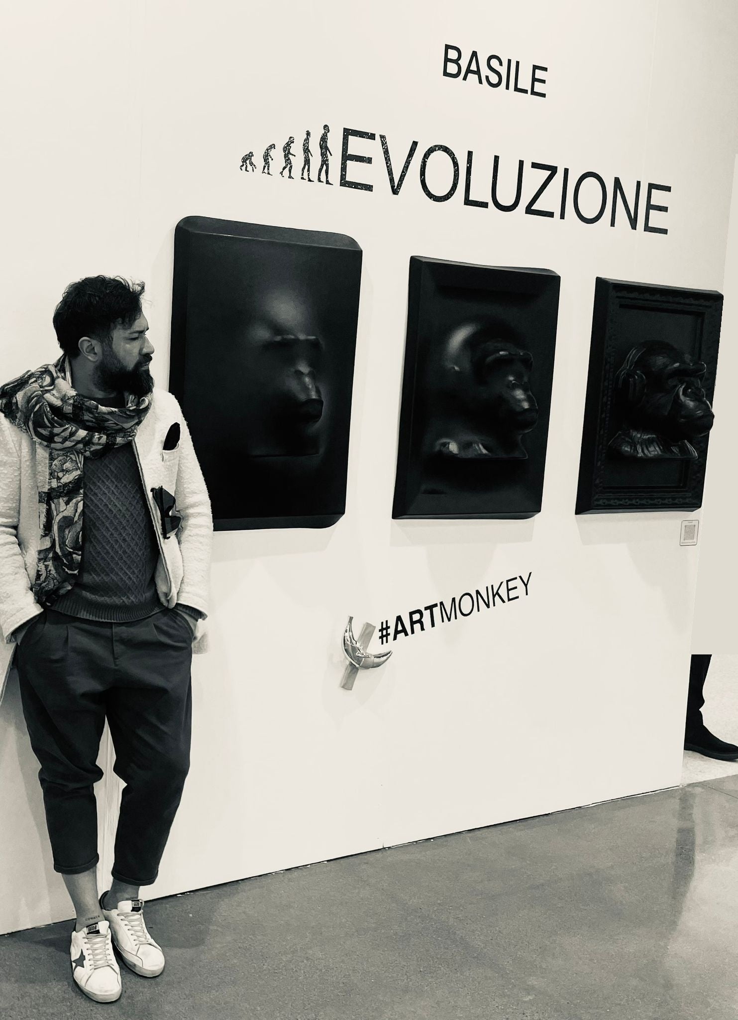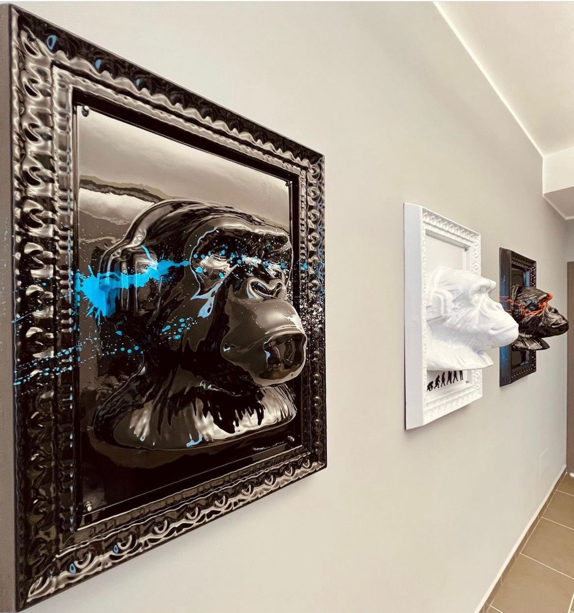 Tra le sue creazioni più iconiche spiccano le #ArtMonkey, scimmie antropomorfe che incarnano un mix materico-cromatico vibrante e audace. Queste opere non sono semplici manifestazioni estetiche, ma espressioni di un messaggio profondo, rappresentando un’esplorazione inconscia e viscerale: in esse, la materia diventa il mezzo per comunicare la dualità dell’essere umano: istinto e razionalità, energia primordiale e riflessione.